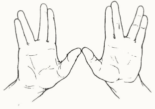 3. Что означают соединённые Большие Пальцы, - то, что Психо-Инфо-Энергетика, поступающая из Высшего Сознания (левый большой палец), не только поступает на самого Коэна, но и излучается наружу.